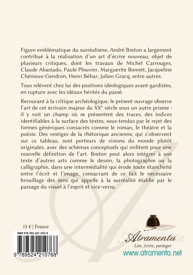 Inspiré par ces postulats, cet essai, qui fait suite à celui qui élabore la théorie et la pratique d’une critique archéologique des arts et des lettres, propose une exploration dans les profondeurs de l’esthétique. Tout en relevant les marqueurs de l’écriture d’André Breton, il identifie les indices d’un style où figures de rhétorique, photographies, dessins et calligraphies mettent en exergue les fondements du surréalisme, établissant d’étroites corrélations entre l’art, pratique individuelle, et la mentalité, donnée collective.