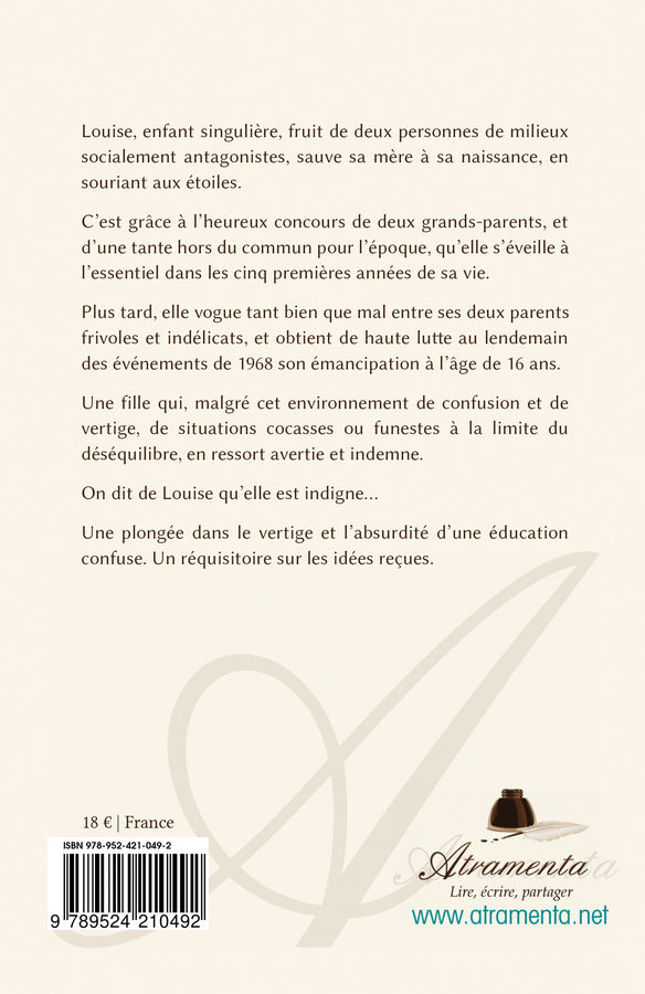 Louise, enfant singulière, fruit de deux personnes de milieux socialement antagonistes, sauve sa mère à sa naissance. Elle voguera entre deux parents frivoles et indélicats jusqu’à son émancipation qu’elle exigera à l’âge de 16 ans, au lendemain des événements de 1968.