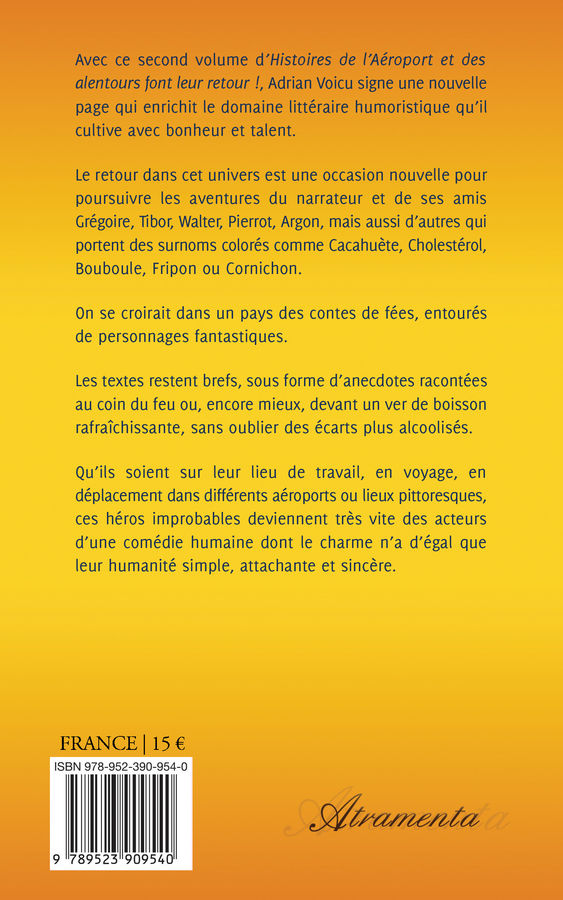 Avec ce second volume d’Histoires de l’Aéroport et des alentours font leur retour ! publié chez le même éditeur, Adrian Voicu signe une nouvelle page qui enrichit le domaine littéraire humoristique qu’il cultive avec bonheur et talent.