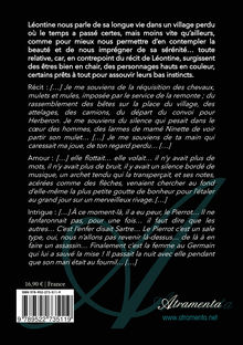 Léontine nous parle de sa longue vie dans un village perdu où le temps a passé certes, mais moins vite qu’ailleurs, comme pour mieux nous permettre d’en contempler la beauté et de nous imprégner de sa sérénité… toute relative, car, en contrepoint du récit de Léontine, surgissent des êtres bien en chair, des personnages hauts en couleur, certains prêts à tout pour assouvir leurs bas instincts.