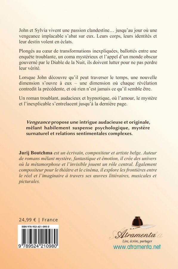 Jurij Boutchma est un écrivain, compositeur et artiste belge. Auteur de romans mêlant mystère, fantastique et émotion, il crée des univers où la métamorphose et l’invisible jouent un rôle central. Également compositeur pour le théâtre et le cinéma, il explore les frontières entre le réel et l’imaginaire à travers ses œuvres littéraires, musicales et picturales.